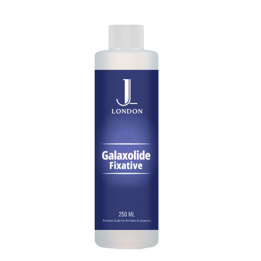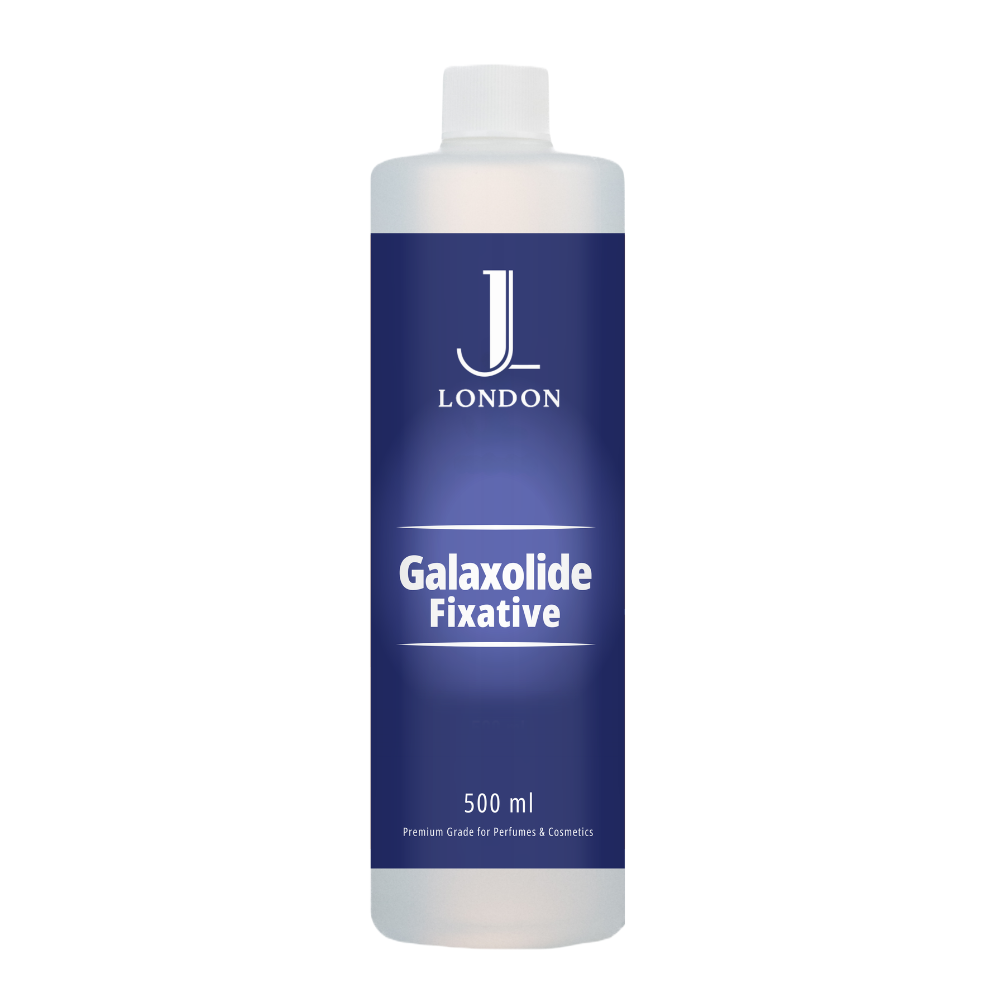 Jan London Galaxolide Fixative: Premium fragrance fixative available in 100ml, 250ml, and 500ml sizes.